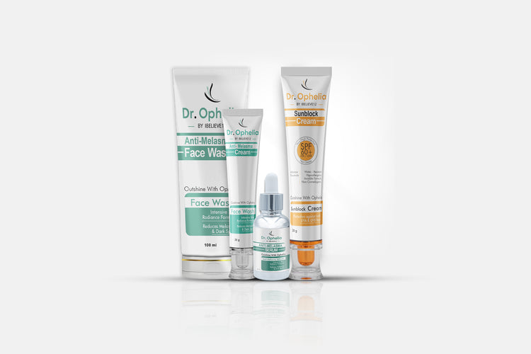 Reveal a brighter, more uniform skin tone with Dr. Ophelia's scientifically crafted Anti-Melasma Kit. This all-in-one regimen is specifically designed to target and reduce the appearance of dark spots, sun damage, and melasma.